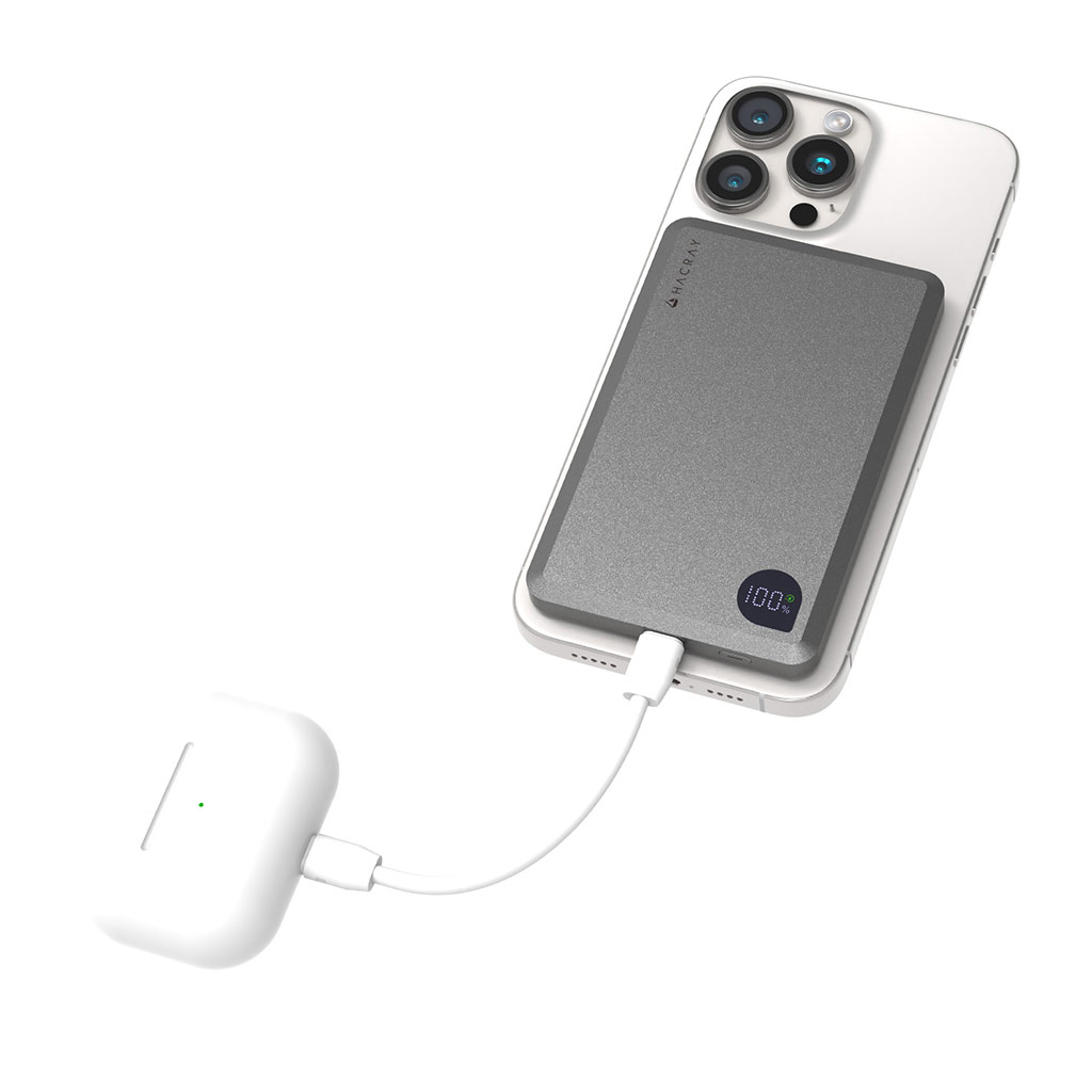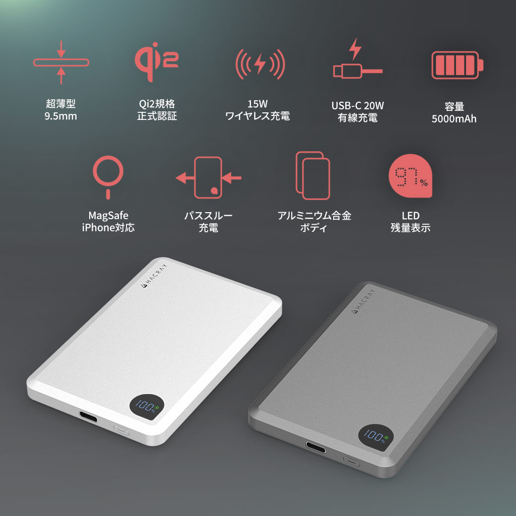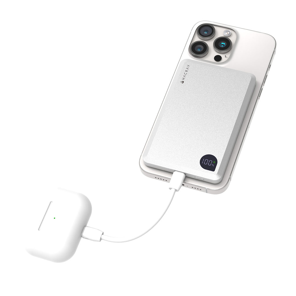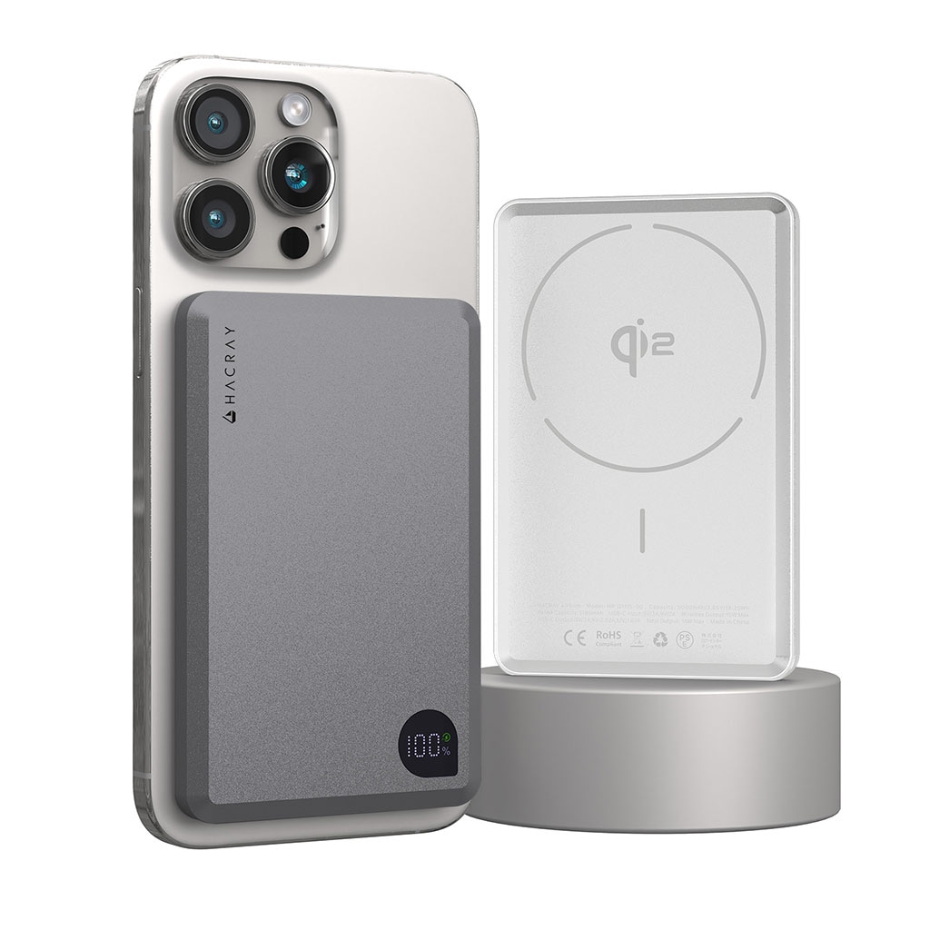 Hacray モバイルバッテリー AirSlimは、Qi2公式認証を取得した最大15Wワイヤレス充電対応の次世代モバイルバッテリーです。