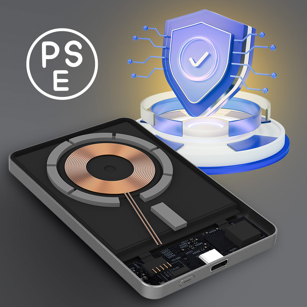過充電防止・過熱防止などの多重保護機能を搭載し、安全性に配慮した設計です。日本国内の安全基準に適合した製品としてPSEマークも取得済み。安心してお使いいただけます。