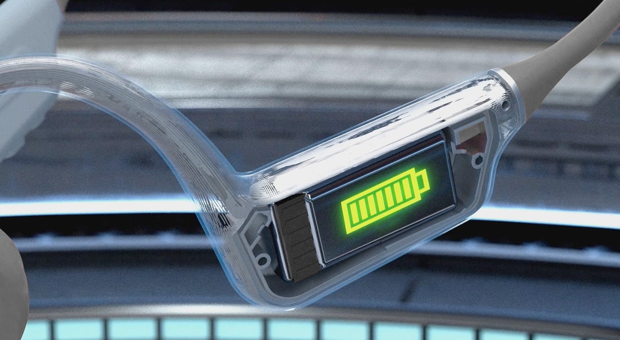 長時間音楽を楽しめる大容量180mAhバッテリーを搭載。最大で約12時間※の連続再生が可能です。耳珠付近や耳上へ装着する場合、音伝導効率の高さから音量を大きくする必要がありません。より長い時間の連続再生が可能です。