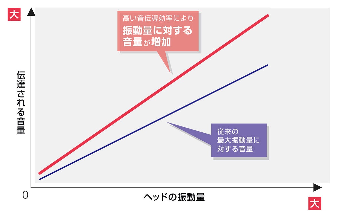 耳孔付近への装着では、骨伝導に加え、振動部からの音を鼓膜にも伝えます。耳内で反響し鼓膜に届く気導音は、細かなエコーやアーティストの息づかいまで表現します。