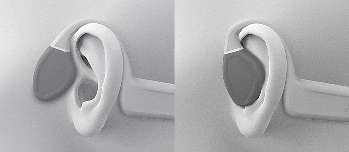 ・耳上:骨伝導と同時に空気振動でも音を伝達。耳内に音を反響させ、リッチな音響を実現。